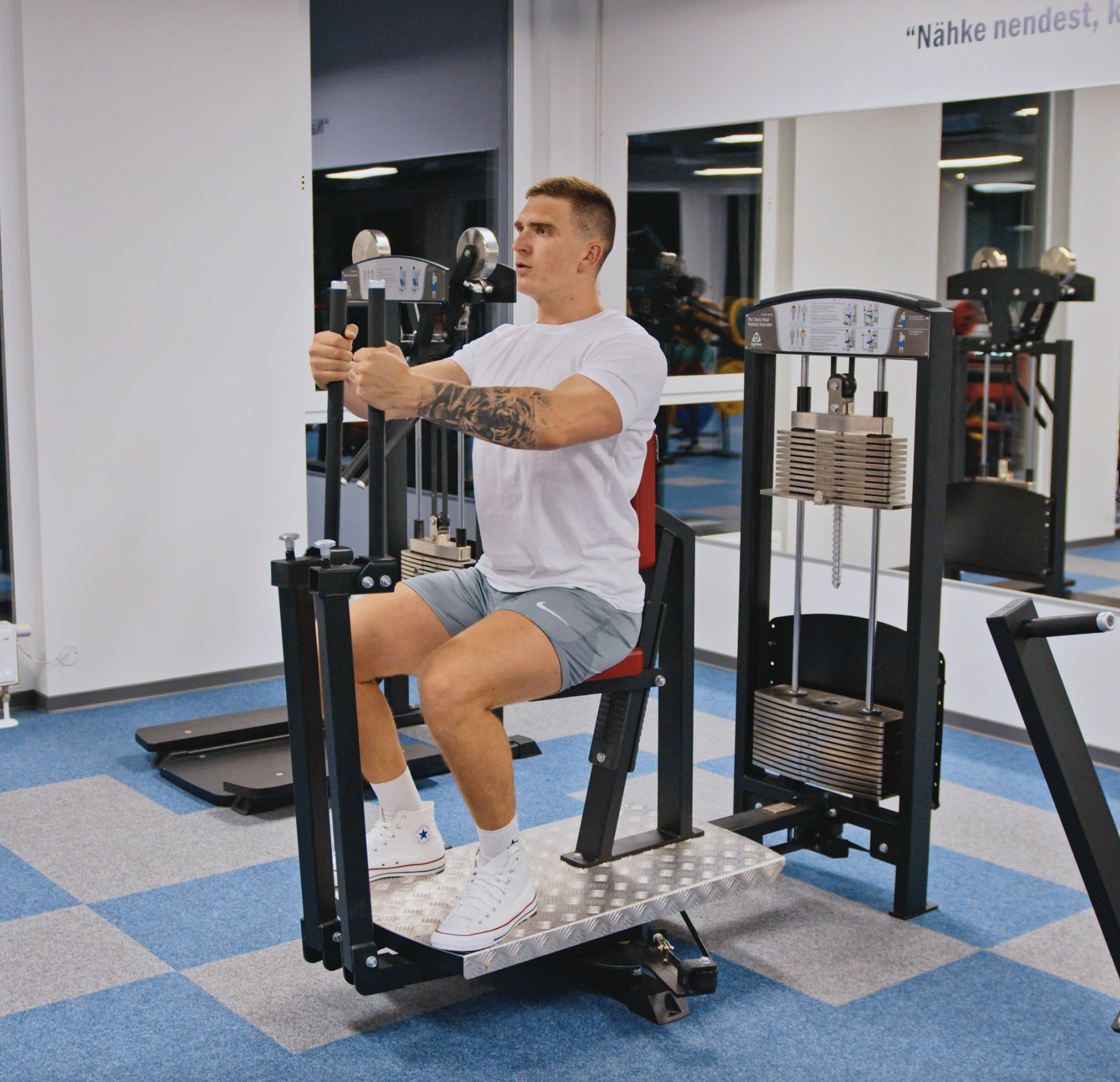 Säti iste mugavale kõrgusele ja säti end nii, et saaksid harjutuse negatiivses osas rinnalihastes korraliku venituse.